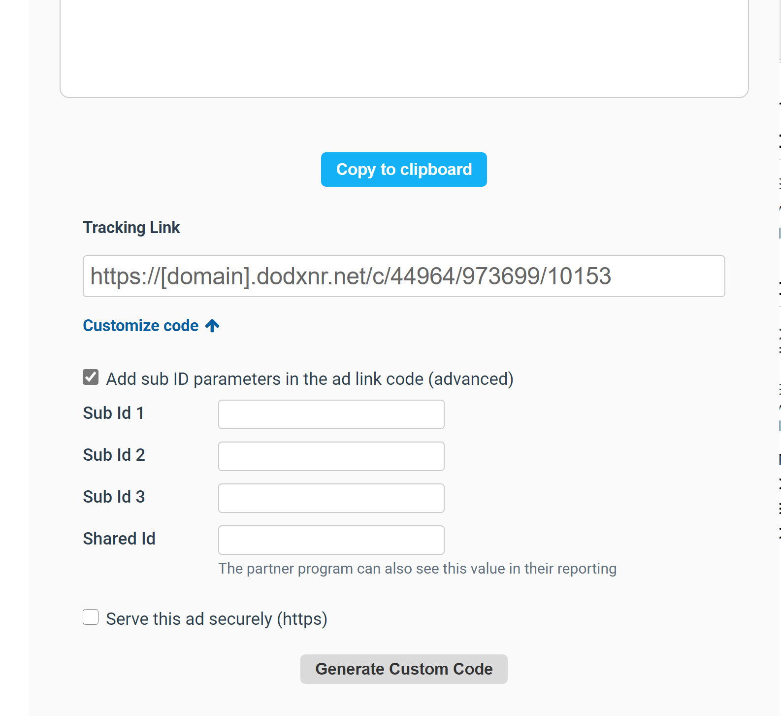 Navigate to Ads > Ads & Links > Find the link you’d like to use > Click “Get Code”