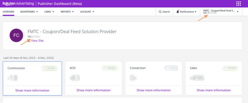 Copy your Site ID (SID) from Rakuten Advertising’s publisher dashboard - https://publisher.rakutenadvertising.com/