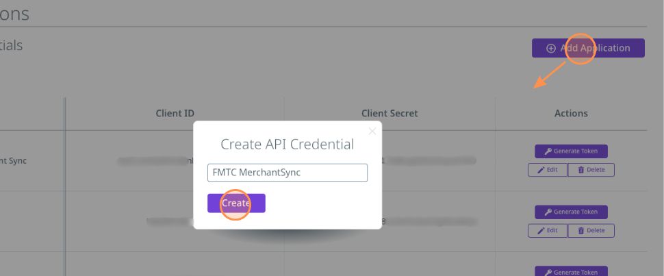 Click “Add Application”, name your API Credential FMTC MerchantSync, then click “Create”