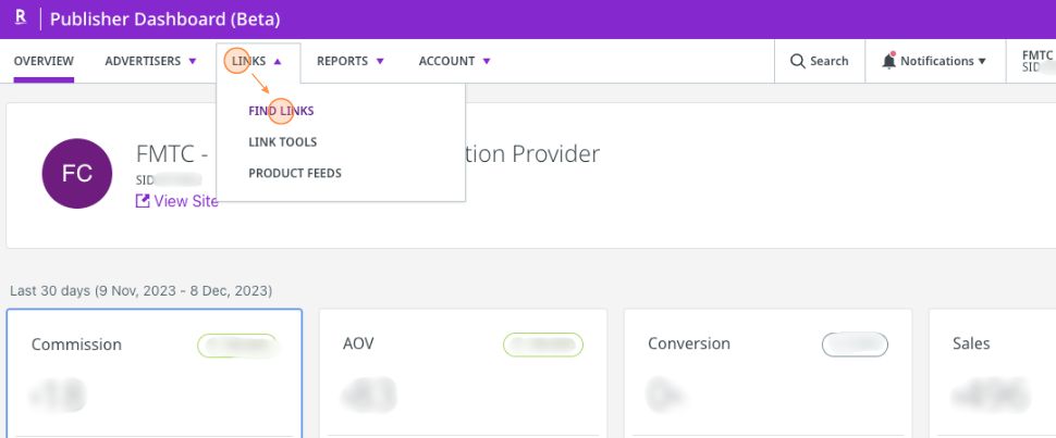 Login to the Rakuten Advertising publisher dashboard - https://publisher.rakutenadvertising.com/